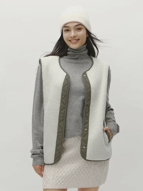 Quilted Trim Faux Shearling Vest