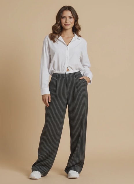 High-Waist Pinstripe Wide-Leg Pants