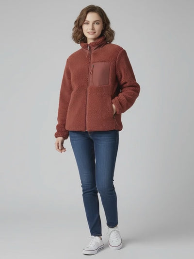 This plush sherpa-fleece jacket delivers warmth and refined comfort in equal measure. Designed with a full-zip front and a stand collar, it offers cozy insulation without sacrificing mobility. A smooth utility chest pocket adds functional contrast while maintaining a clean, elevated aesthetic. Finished with neatly bound edges and relaxed tailoring, this layer embodies timeless leisurewear with modern practicality, perfect for brisk mornings, weekend retreats, or effortless everyday layering.
